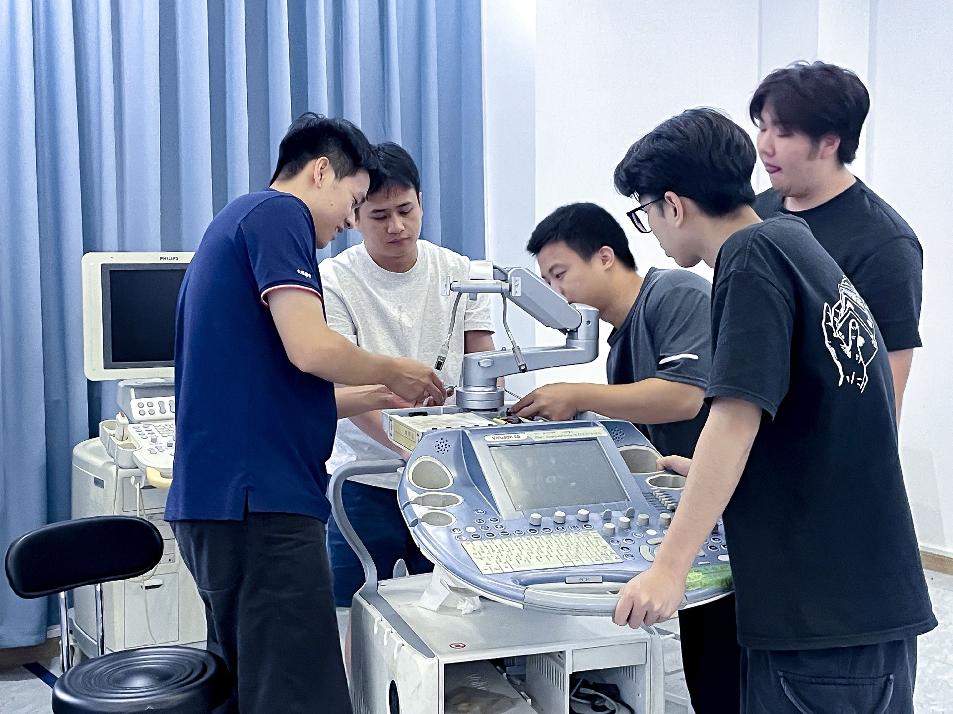進階培訓的核心,是將理論轉(zhuǎn)化為“可落地的維修能力”。5天里,學員圍繞GE VOLUSON E系列、日立小二郎神、飛利浦EPIQ/CX系列等高端機型,展開密集實操: